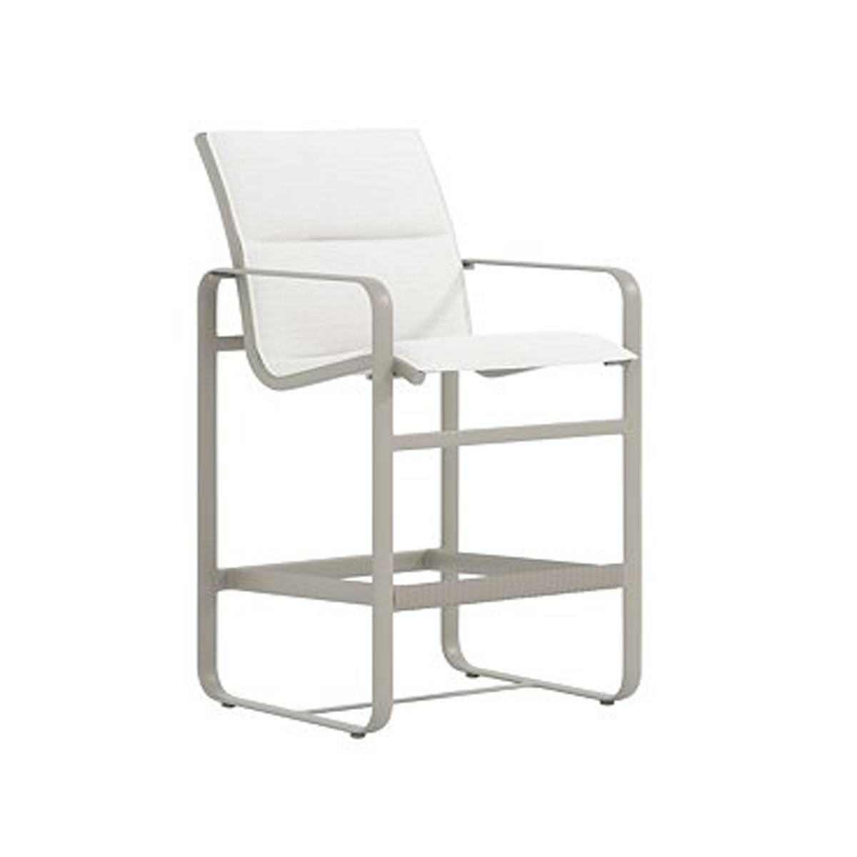 Rise above in comfort and style with the Brasilia Padded Sling Barstool. Its structured, yet open silhouette with gently rounded armrests and high back provide just the right amount of support. With a seat height of 28”, it’s ideal for counters between 35”-40”. It features all-weather sling fabric that encases pillowy fiberfill for an extra soft seat. Customize your bar stool with Tropitone’s exclusive padded sling fabrics and powder coat finishes.